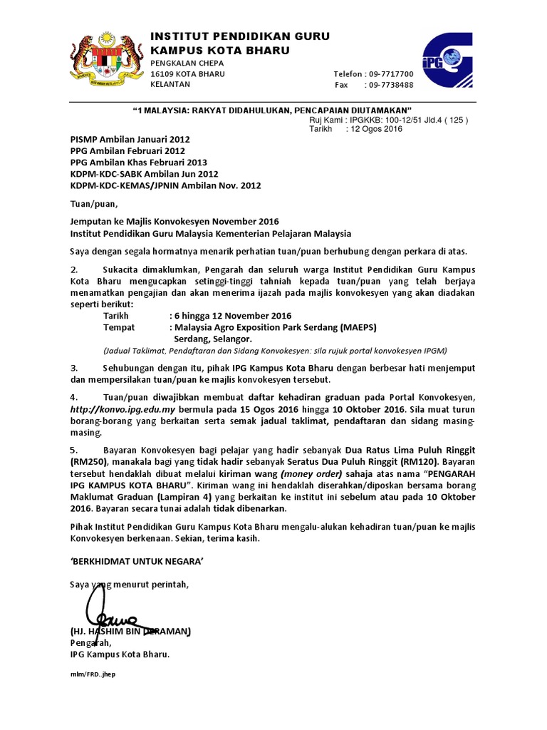 Dengan suara jeritan dia yg leh dengo dr hujung hingga ke hujung. Konvokesyen Institut Pendidikan Guru. Semakan Sidang dan Cetakan Surat Jemputan Istiadat Konvokesyen.