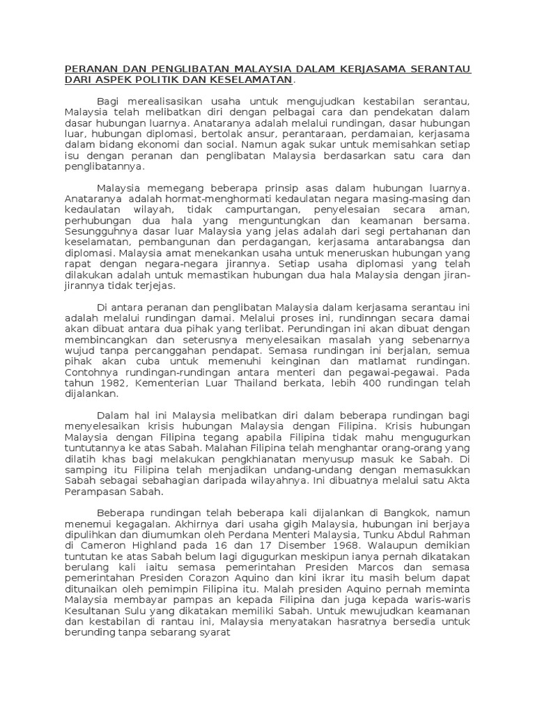 Peranan Dan Penglibatan Malaysia Dalam Kerjasama Serantau Dari Aspek Politik Dan Keselamatan Pdf